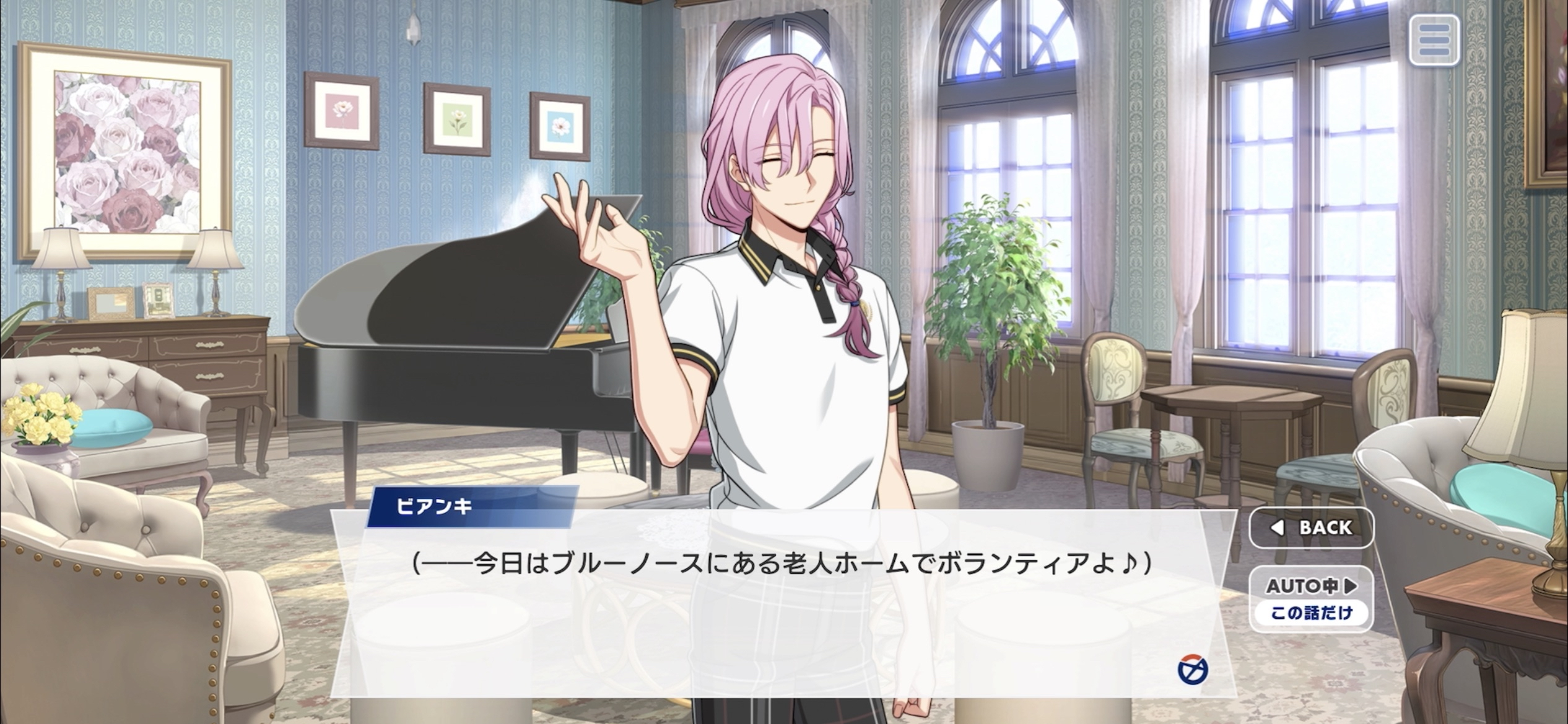 Bianchi: (ーToday, I'm volunteering at a nursing home in Blue North ♪