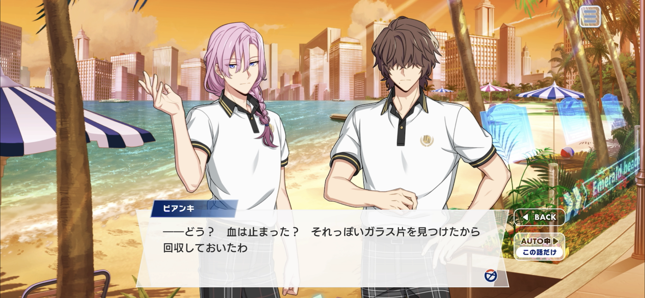 Bianchi: ーHow is it? Did the bleeding stop? I found a glass shard that looks like it could be the reason, so I picked it up.